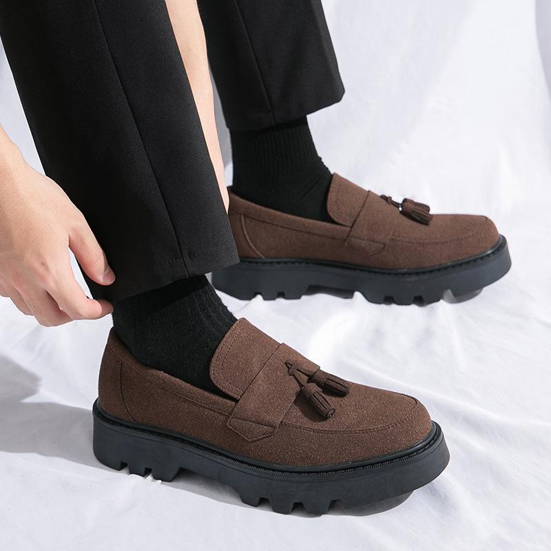 2025 New British Style Foot Loafers Men's Platform Heightening Trend College Style Casual Shoes 2025 Board Shoes