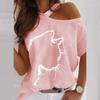 Women's Fashion Cat Print Tees Camisole Off Shoulder T-shirt Summer Ladies Plus Size Short Sleeve Blouse Top
