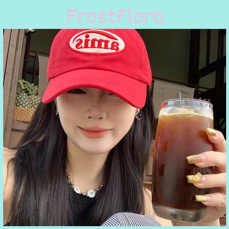 Hat Red Peaked Baseball Cap Amis Letter Pattern Soft Top Adjustable Breathable