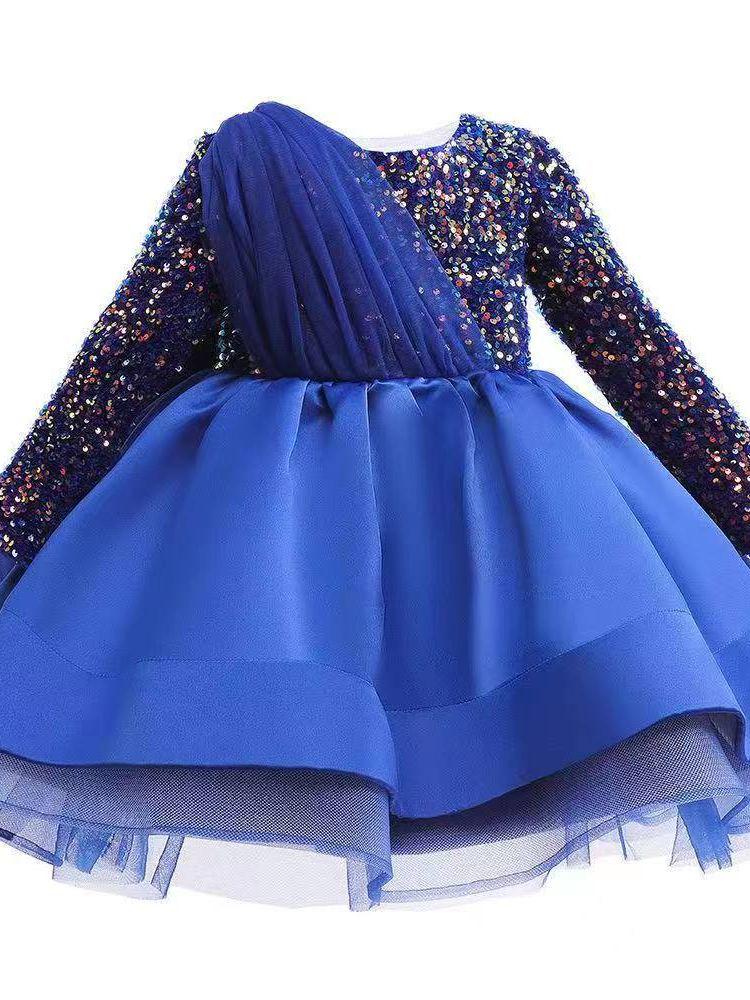 Introduce your little one to a world of enchantment with this stunning sequined princess long-sleeve evening dress, designed for girls aged 1. Crafted from a soft cotton blend, this dress ensures comfort while adding a touch of sparkle to any special occasion. The dazzling sequins catch the light beautifully, making it the perfect choice for parties, family gatherings, or any event where your child can shine.