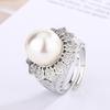 Jewelry Copper Platinum Plated Pearl Ring Women'S 14Mm