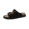 Women's PU Suede Flat Slippers Two-layer Adjustable Buckle Rubber Soft Sole Non-slip Sandals Beach Open Toe Slides Sandalias New