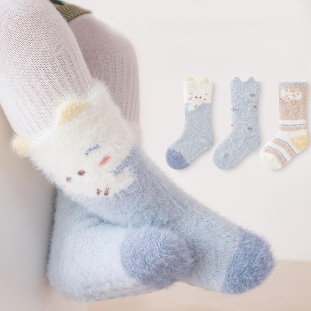 Children's Mid-Calf Socks Mink Velvet Warm Baby Socks Loose Mouth Non-Tightening Foot Seamless Glue Anti-Slip Floor Socks