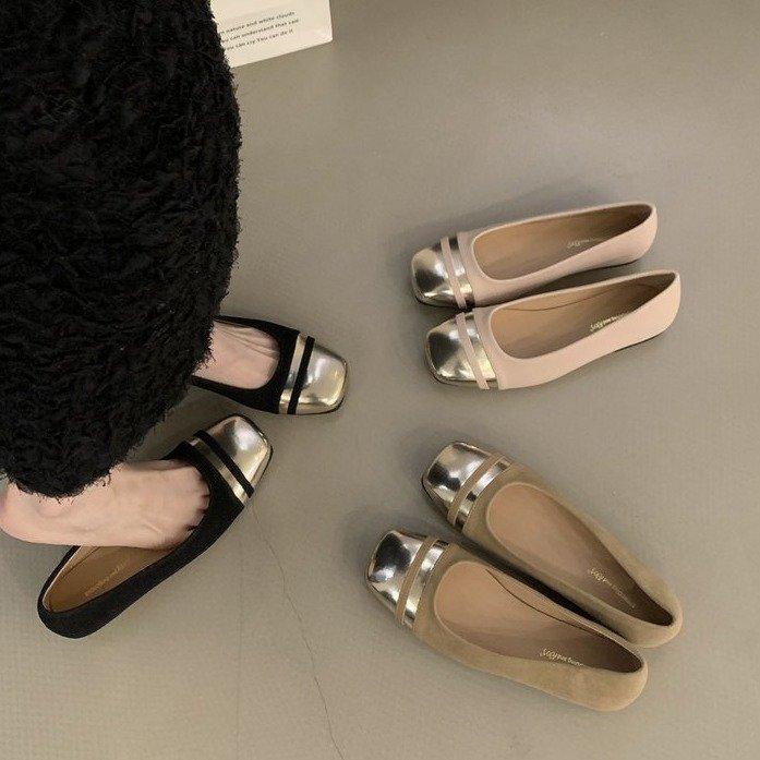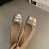 French Retro Patent Leather Baotou Sandals Women's 2025 Spring and Summer New Square Head Metal One-word Buckle with Thick Heel Single Shoes Women