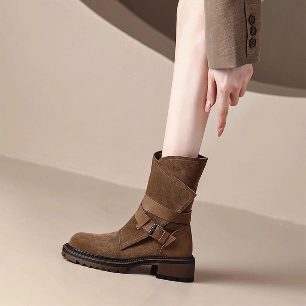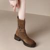 Retro Belt Buckle Thick-soled Martin Boots Women's 2025 Autumn New Imitation Cowhide Thick Heel British Short Boots Western Cowboy Boots
