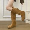 2025 New Spring and Autumn Small Long Tube Pleated Thin Knight Boots Suede Thick Heel Long Tube Two Wear Fashion Boots Women