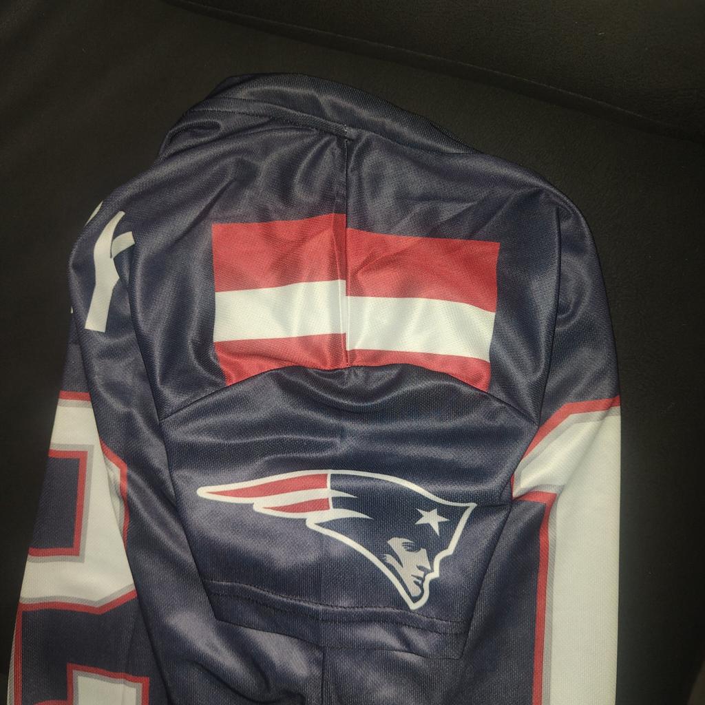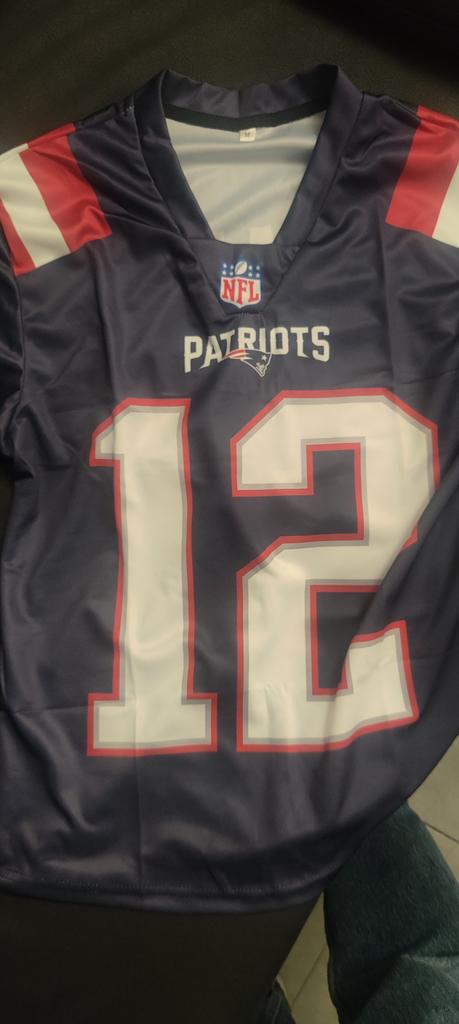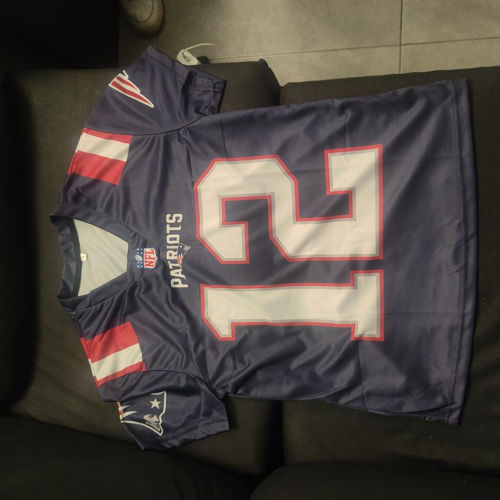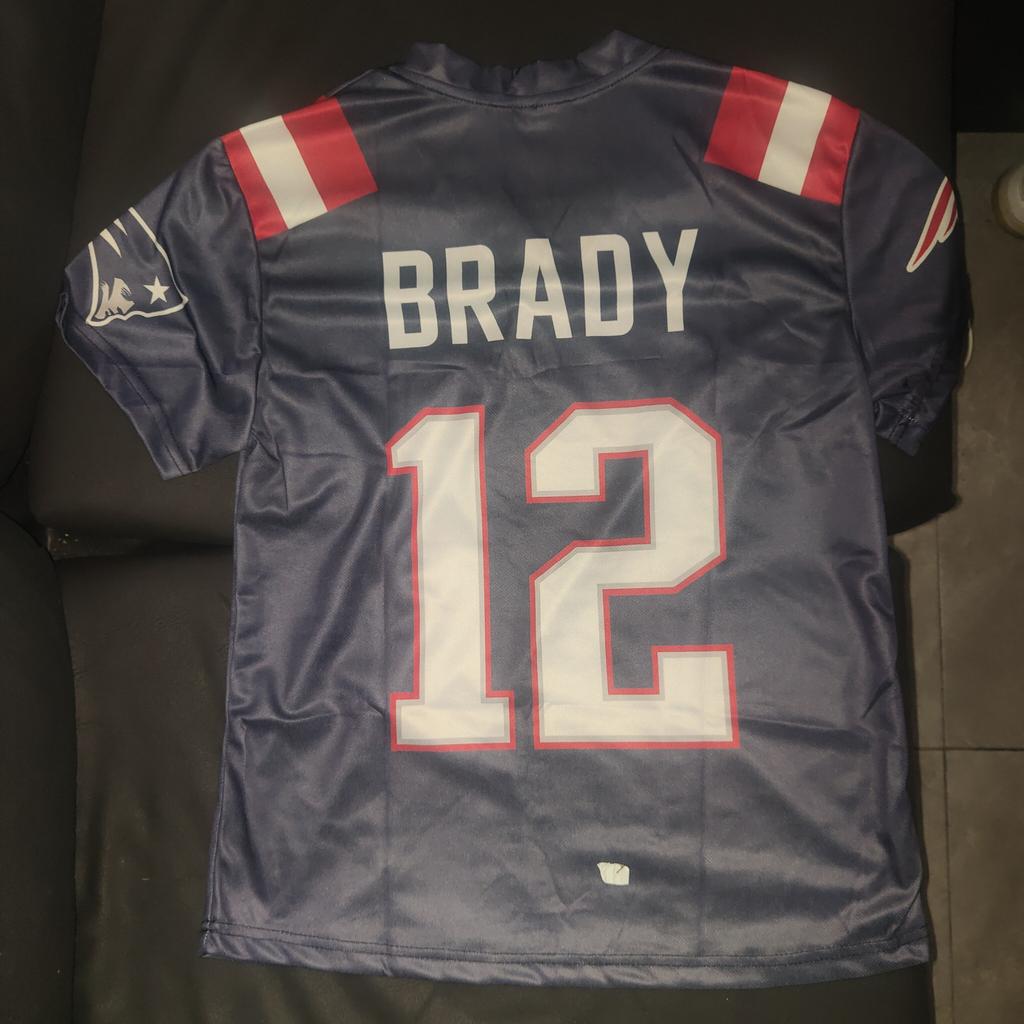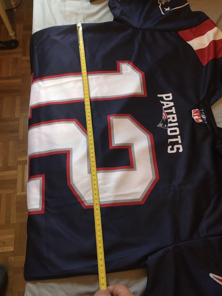 The quality of the fabric is bad. The seams are completely misaligned. The description states that the item is new and with tags, and the photo shows it like that, but in reality, it has no tags at all. It also says the name is embroidered, which is a lie. Furthermore, the NFL symbol is crooked. It's a bad imitation.