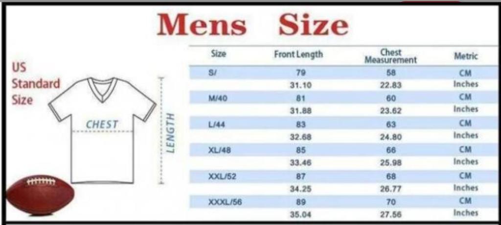 I bought an XXXL, the chest should measure 70 and it's an M, it measures 60. Very disappointed with the purchase. I will return it. I wanted it for the Super Bowl on February 8th and it won't be possible. A tremendous disappointment