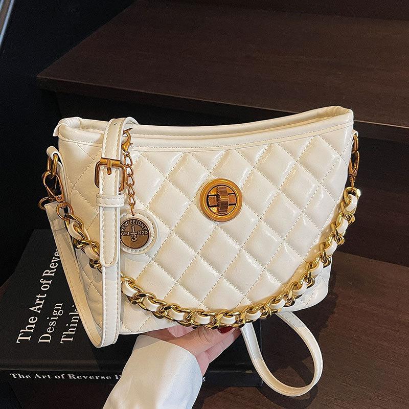 Trendy New High-end Small Fragrant Wind Rhombus Bucket Bag Female Korean Version Dopamine Casual Temperament Commuter Messenger Bag