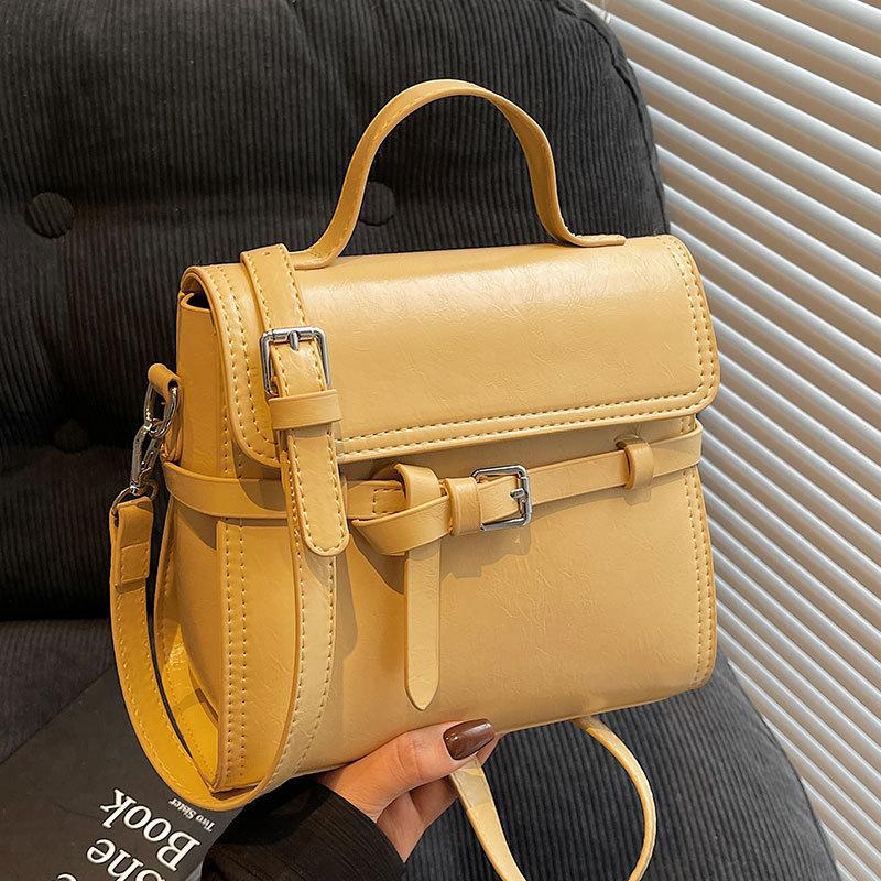 Spring and Summer New Niche Retro High-end Oil Wax Leather Portable Small Square Bag Fashionable Commuting Versatile Foreign Style Messenger Bag
