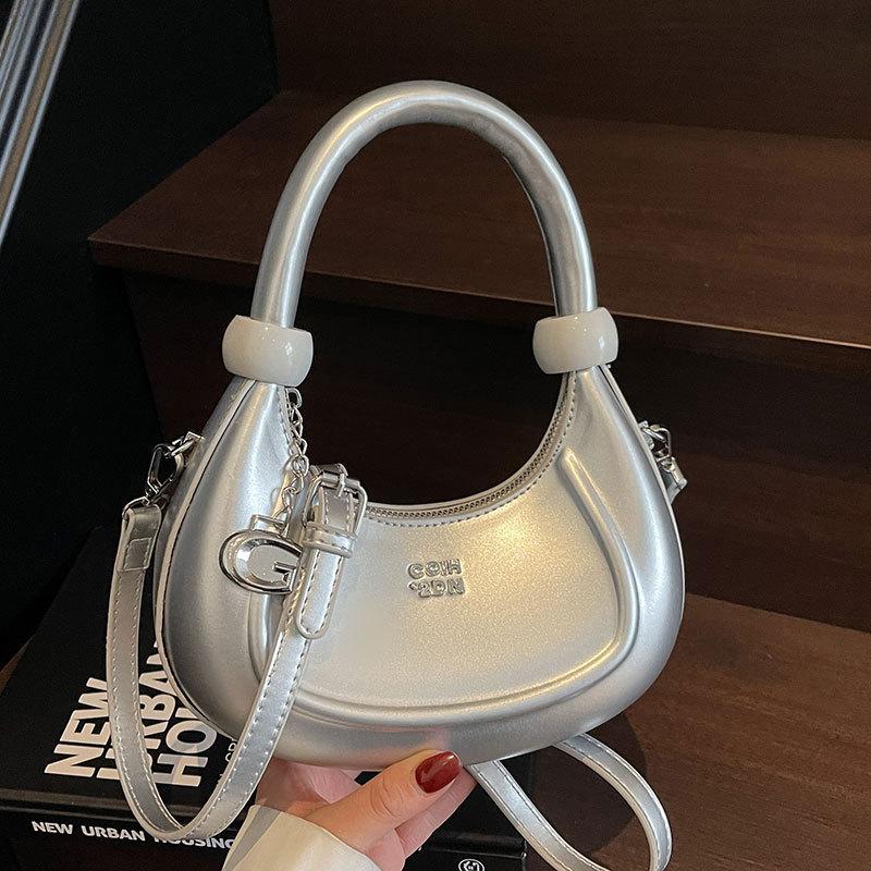 2025 New Fashion High Sense Niche Crescent Bag Women's Simple Temperament Versatile Commuter Oil Wax Leather Messenger Bag