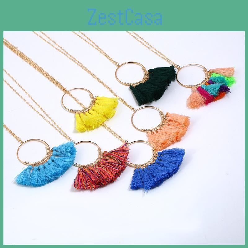 This tassel pendant necklace features a geometric design and an electroplate finish, providing a stylish accessory for summer outfits and gifting occasions. Made of metal and tassel accents Ideal for weddings, travel souvenirs, or employee rewards, it offers versatile wear. Wipe clean with a soft cloth to maintain its shine.