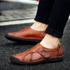 2025 Autumn Leather Beanie Shoes Men's British Board Shoes Large Size Leather Shoes Non-slip Overshoes Stitching Pure Leather
