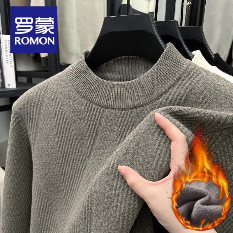 Luomeng Men's Winter Thickened Fleece-Lined Round Neck Knit Sweater