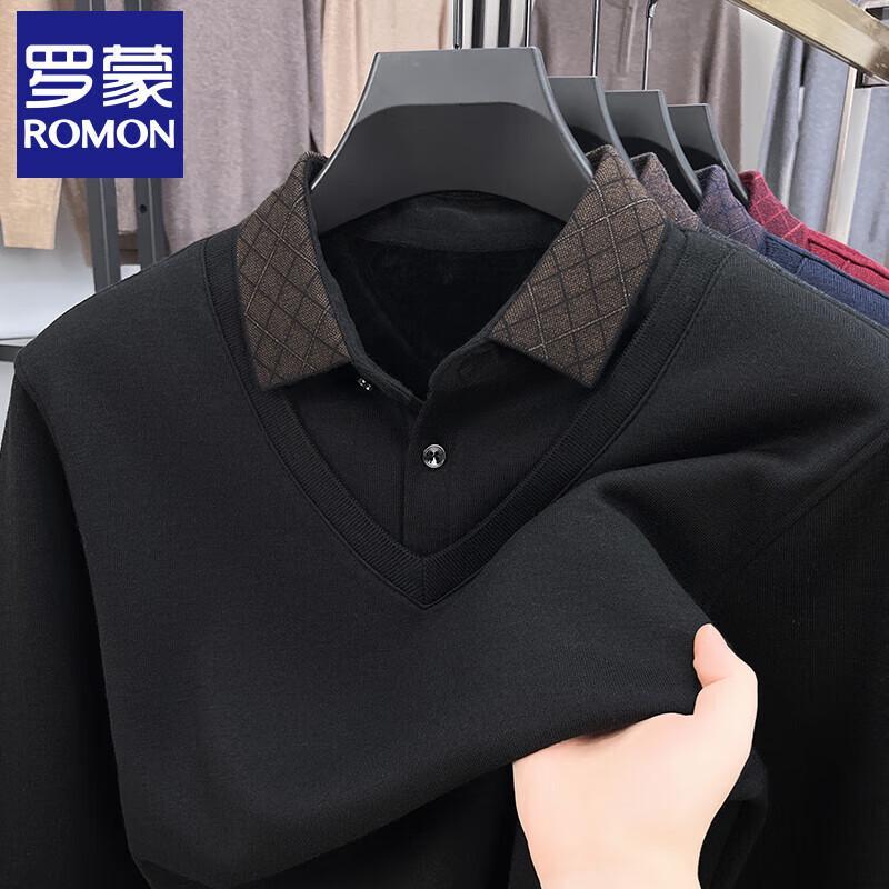 ROMON Men's Faux Two-Piece Wool Blend Pullover Sweater