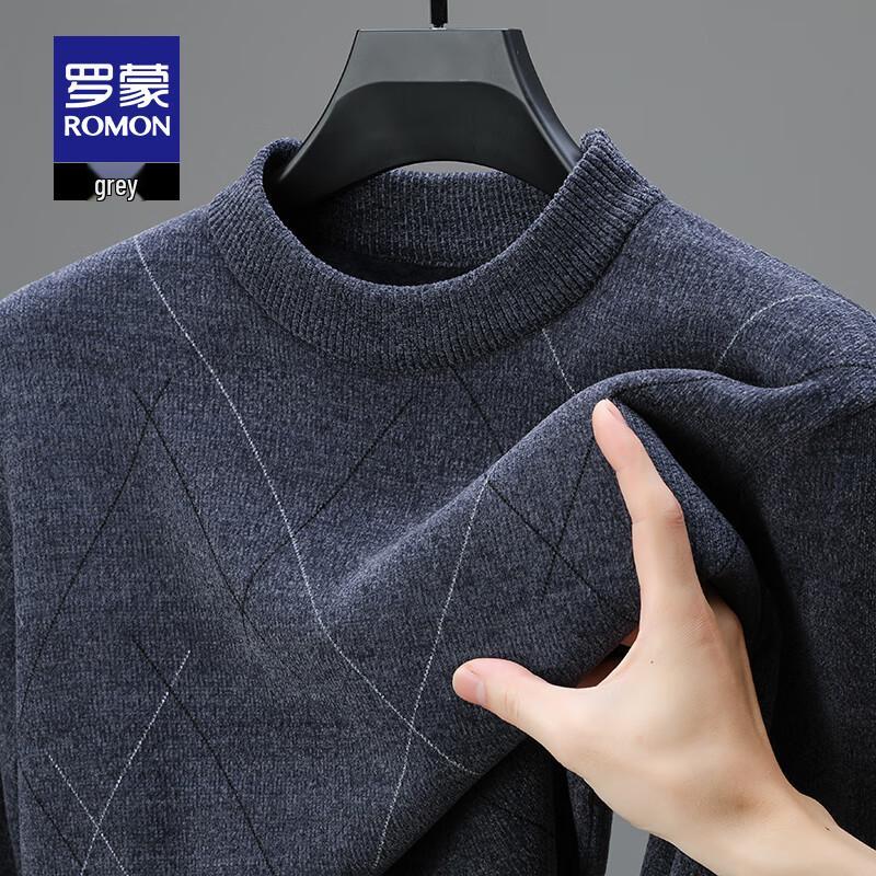 Luomeng Men's Plush Lined Round Neck Knit Sweater
