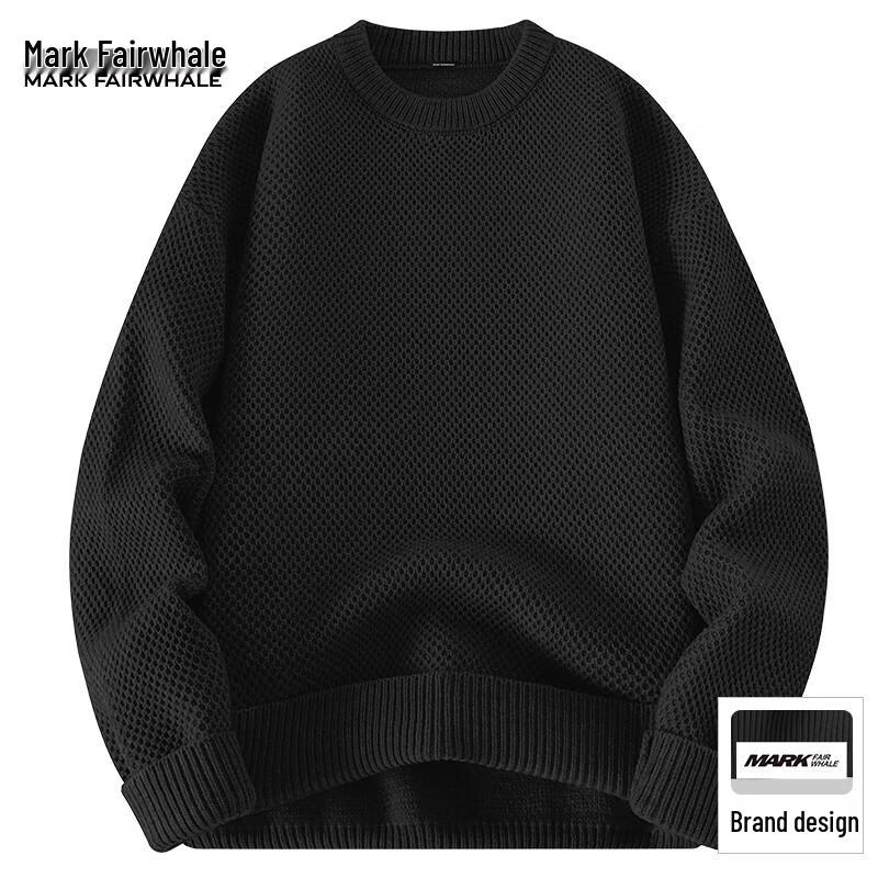 Mark Fairwhale Men's Loose Fit Pineapple Texture Round Neck Knit Sweater