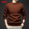 Hengyuanxiang Men's Thickened Round Neck Knit Sweater with Two Buttons