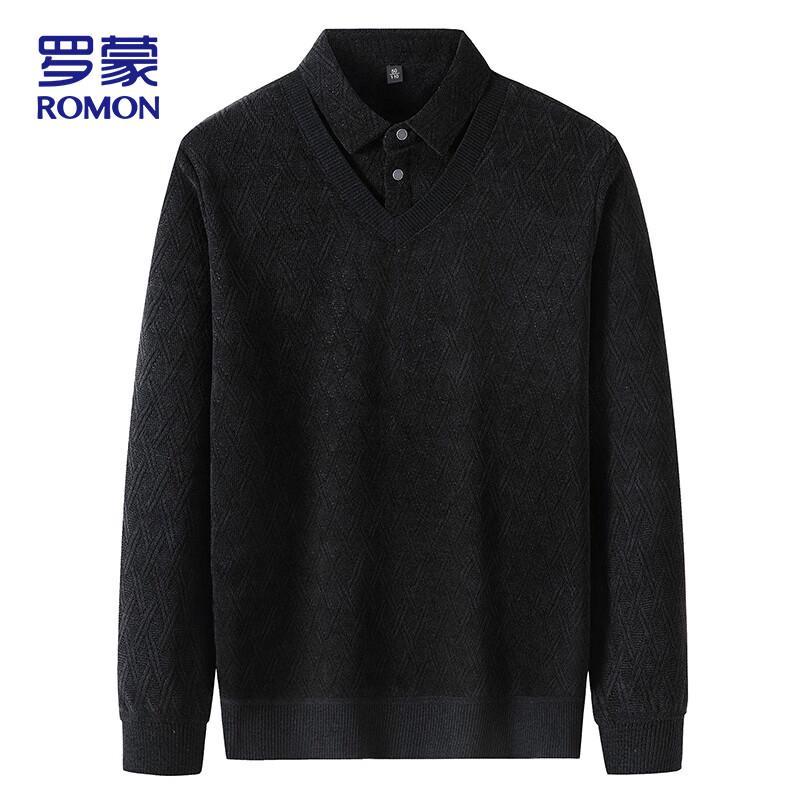 ROMON Men's Faux Two-Piece Business Casual Knit Sweater