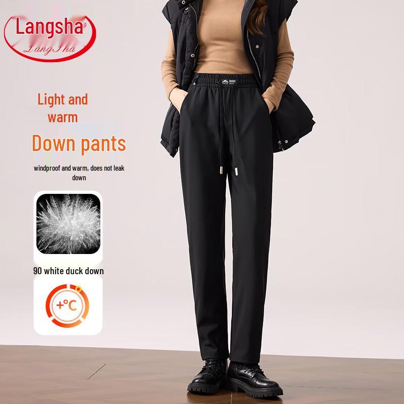LANGSHA Unisex Winter High-Waist Fleece-Lined Light Down Sweatpants