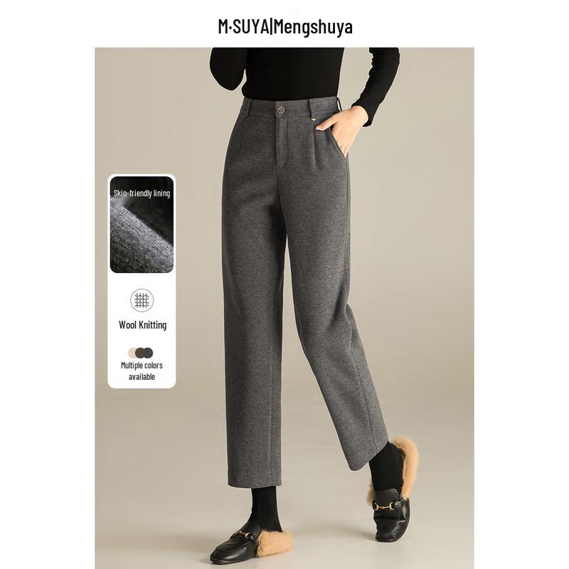 Mengshuya Petite High-Waist Tapered Wool Blend Ankle Pants