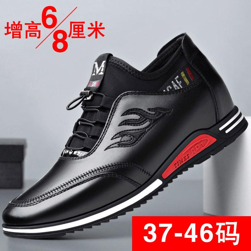 New Leather Men's Shoes Soft Sole Invisible Height Increase 6CM Leather Shoes, Soft Sole Youth Dating Little White Shoes Mesh Breathable Embroidery