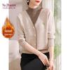YUZHAOLIN Faux Two-Piece Fleece-Lined Knitted Cardigan for Women