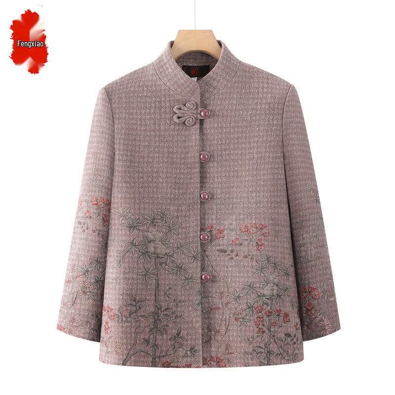 Elderly Women's Floral Stand Collar Spring Autumn Jacket
