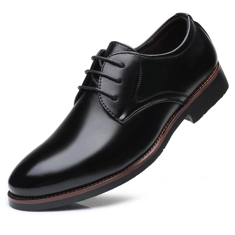 Spring and Autumn Men's Leather Shoes Business Dress Leather Shoes Men's Lace-Up Fashion Single Shoes Large Size Men's Shoes Wenzhou Foreign Tr