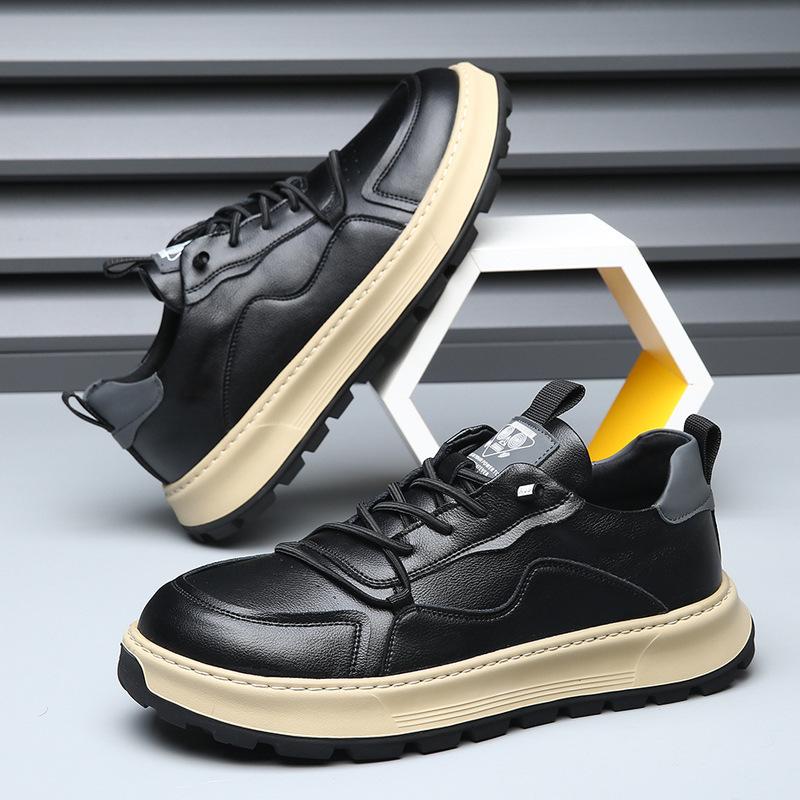 European Station Leather Men's Shoes Platform Breathable Casual Shoes Men's 2025 Autumn Trend Clown Shoes New White Shoes