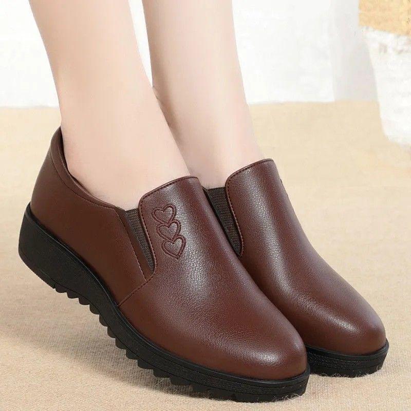 Mom Shoes Soft Leather Soft Sole Does Not Grind Feet 2025 Autumn Women's Shoes Soft Surface Soft Sole Does Not Tire Feet Single Shoes Non-slip Wo