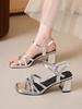 French Silver Sandals Women's 2025 Spring New Fashion Thick Heel High Sense Shoe Temperament Word with High Heels