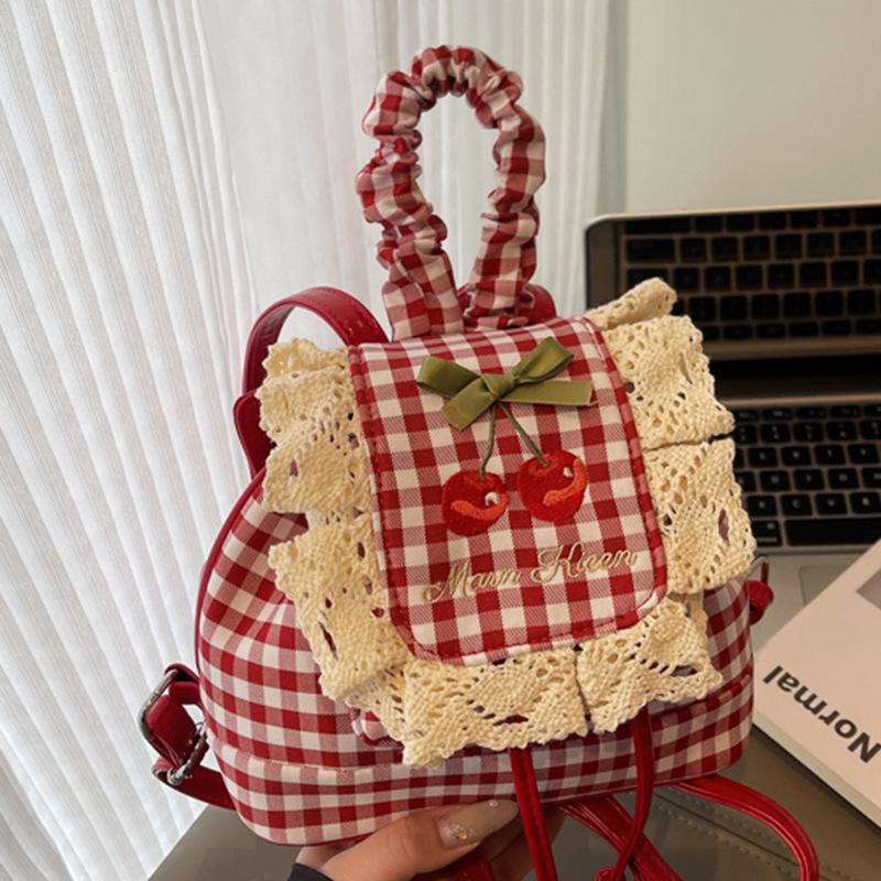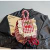 Foreign Style Girl Commuter Backpack, Portable Drawstring Lid, Contrasting Color Plaid, College Style Schoolbag, Texture Embroidery Backpack.