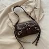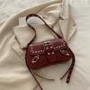 2025 New Shoulder Messenger Bag Texture Trendy Cool Spice Girl Rivet Personalized Design Locomotive Fashionable Underarm Baguette Bag