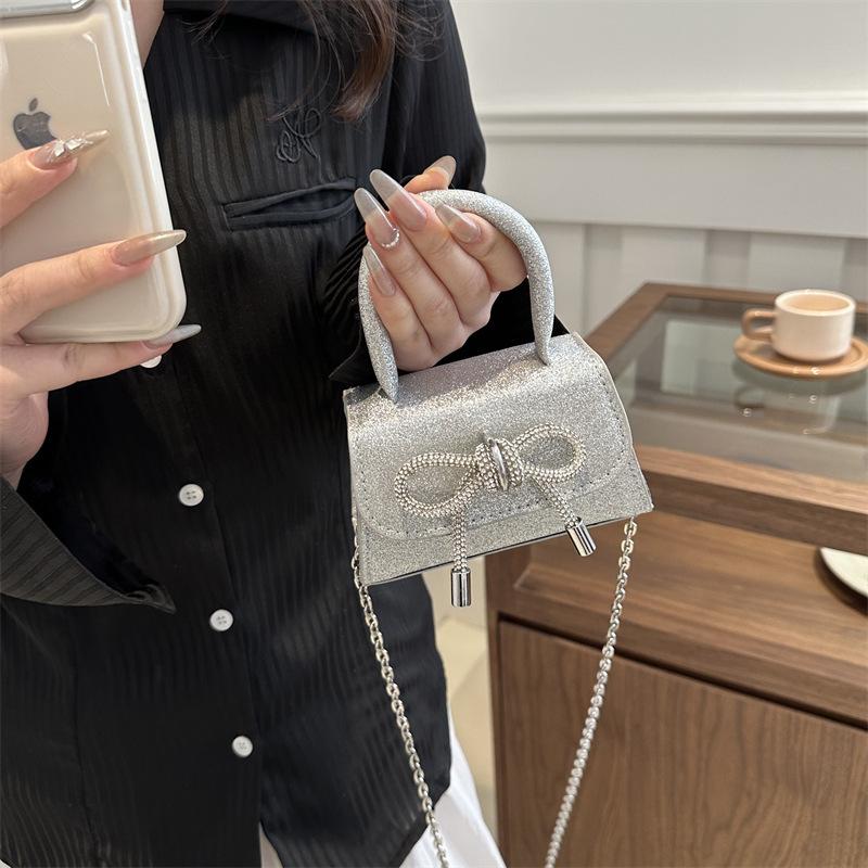 2025 New Chain Crossbody Shoulder Sequined Women's Bag Texture Small Fragrant Wind Solid Color Bow Mini Portable Bag