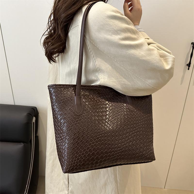 Korean Version of Casual Commuting Large-capacity Bag Women's 2025 Woven New Simple Tote Bag Niche Fashion Shoulder Bag