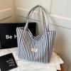 Large Capacity Tote Bag French Striped Canvas Bag New Summer Versatile Women's Bag Light Commuter Shoulder Bag
