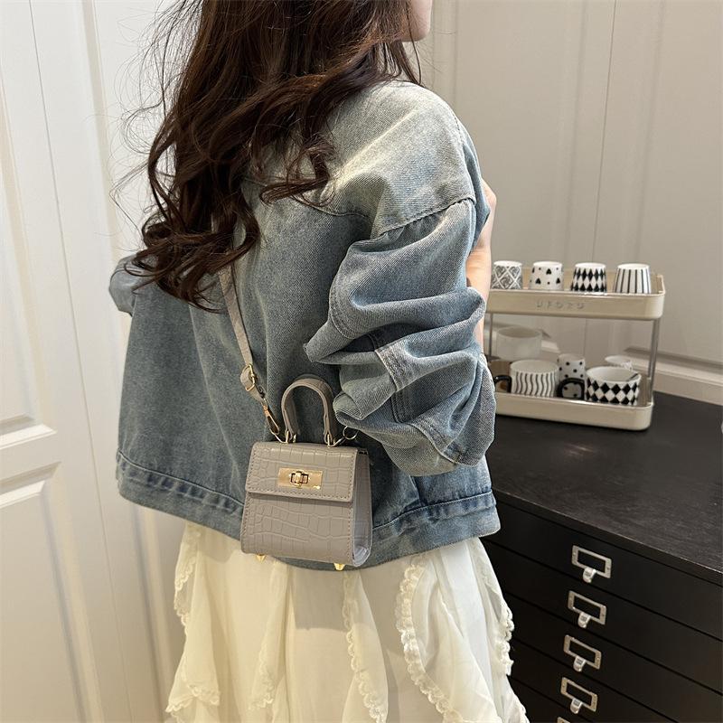2025 New Women's Bag European and American Trend Women's Bag PU Bag Shoulder Messenger Bag Solid Color Crocodile Pattern Small Square Bag