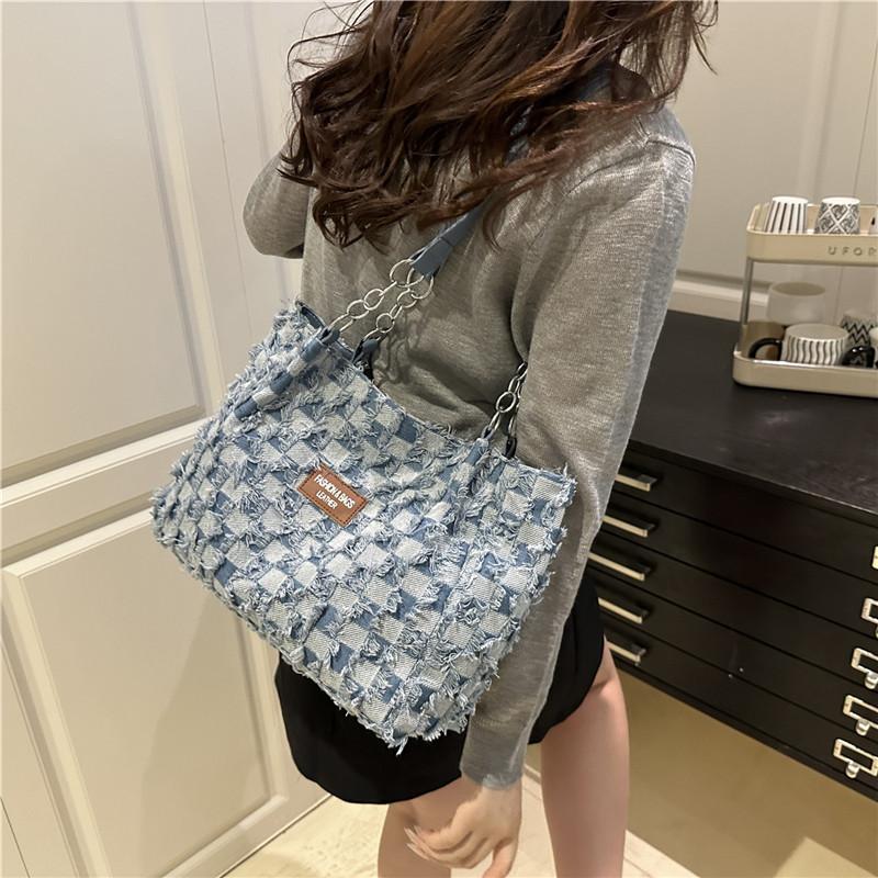 Denim Checkerboard Messenger Bag Baguette Bag 2025 Spring New Temperament Shoulder Bag French Underarm Bag Women
