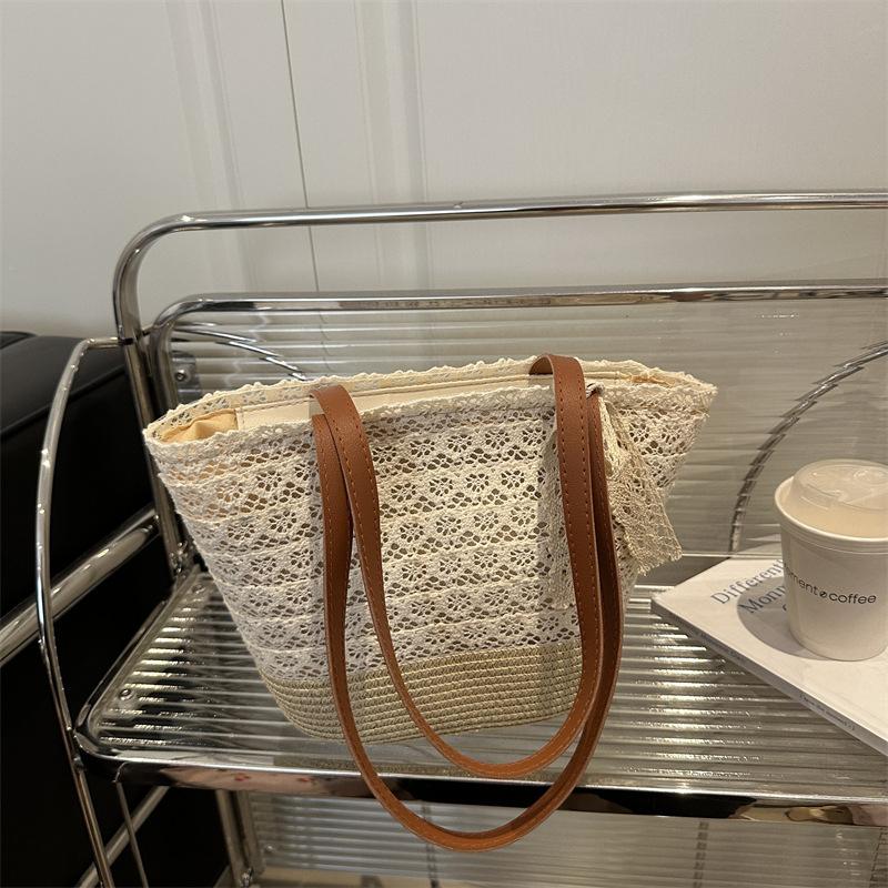 Summer Straw Bag Woven Bag 2025 Seaside Vacation Beach Bag Large Capacity Straw Versatile Shoulder Bucket Bag