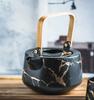 Marbled Home Tea Set Japanese Black & White Ceramic Afternoon Tea Cup with Acacia Wood Base Teapot