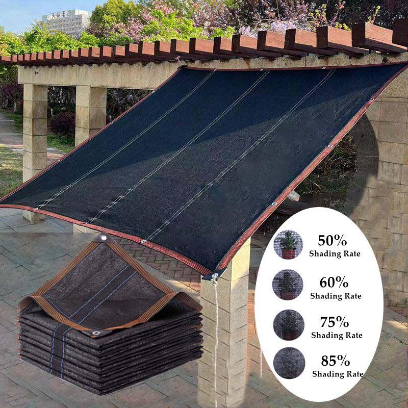 3~12Pin Black Shade Cloth Sunblock Mesh Edge With Grommets, Sun Net For Pergola, Plants Greenhouse, Gardens, Patio, Canopy