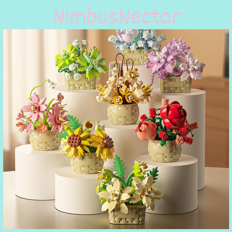 Children Small Puzzle Particle Building Block Flower Model Toy Rose Sunflower