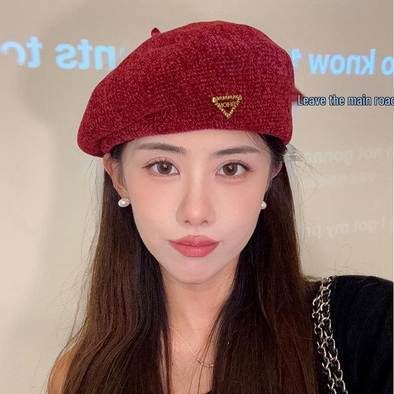 Women's Korean-Style Thickened Cashmere Beret - Warm, Windproof, Retro Triangle Design for Autumn and Winter