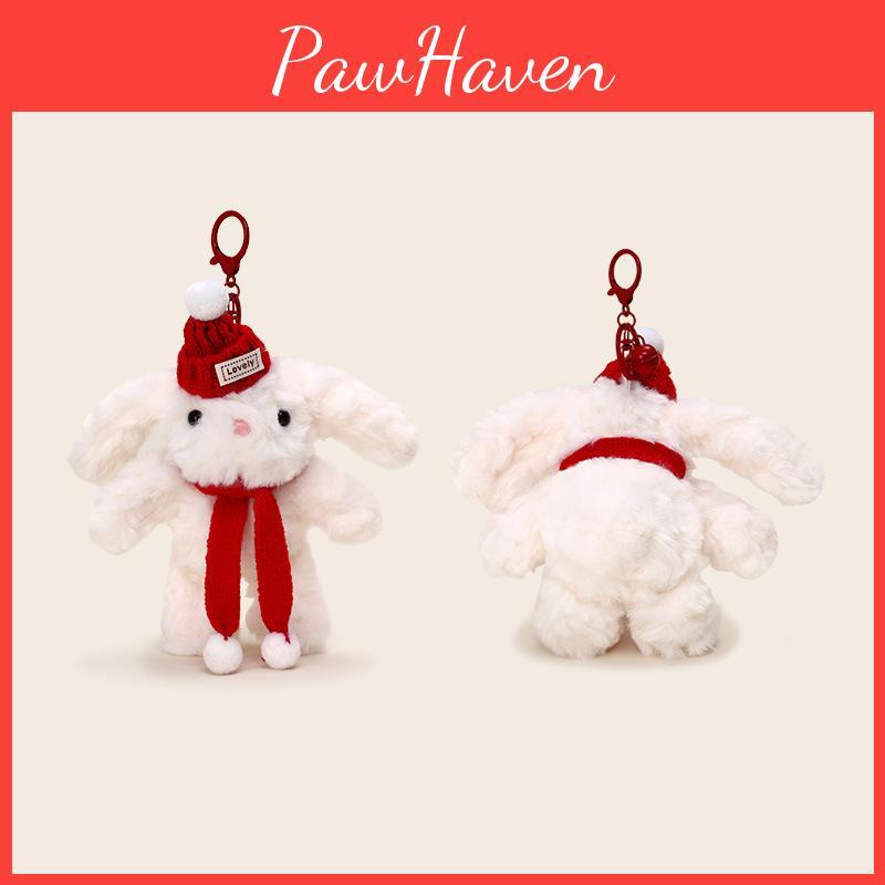 This plush rabbit keychain features a soft, durable polyester fiber construction Its adorable design includes a cozy scarf and long ears, making it ideal for attaching to keys, bags, or backpacks. Suitable for everyday use and gifting occasions, it offers reliable key storage while adding a playful touch. Wipe clean with a damp cloth to maintain its charm.