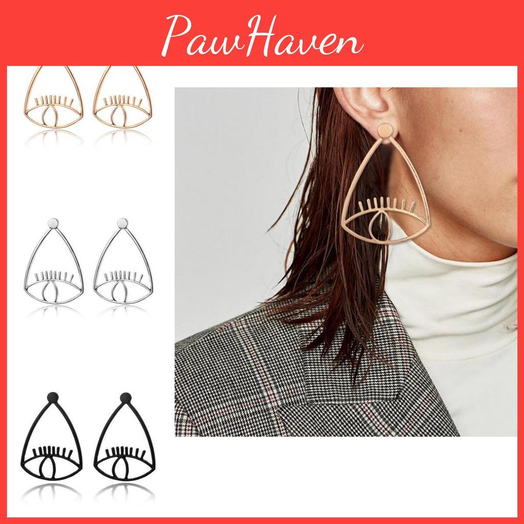 Unique Design: These eye-shaped earrings have a hollow, geometric design that makes them stand out.