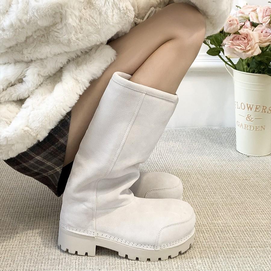 Cowhide Version~ Warm Huhu Thick-soled Ugly Big-headed Snow Boots Women's Autumn and Winter Warm Sheepskin Fur Integrated Long Boots