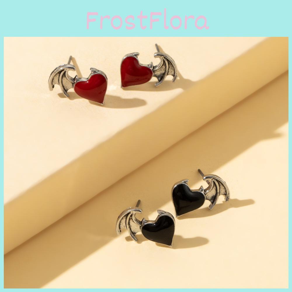Wing Modern Alloy Heart Earrings For Women In Red And Black 2022 Summer