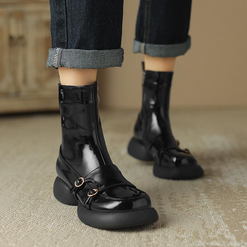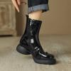 Autumn and Winter Women's Platform Fashion Boots Side Zipper Large Size Round Head Women's Boots New Rubber Sole Patent Leather Medium Boots Women