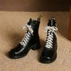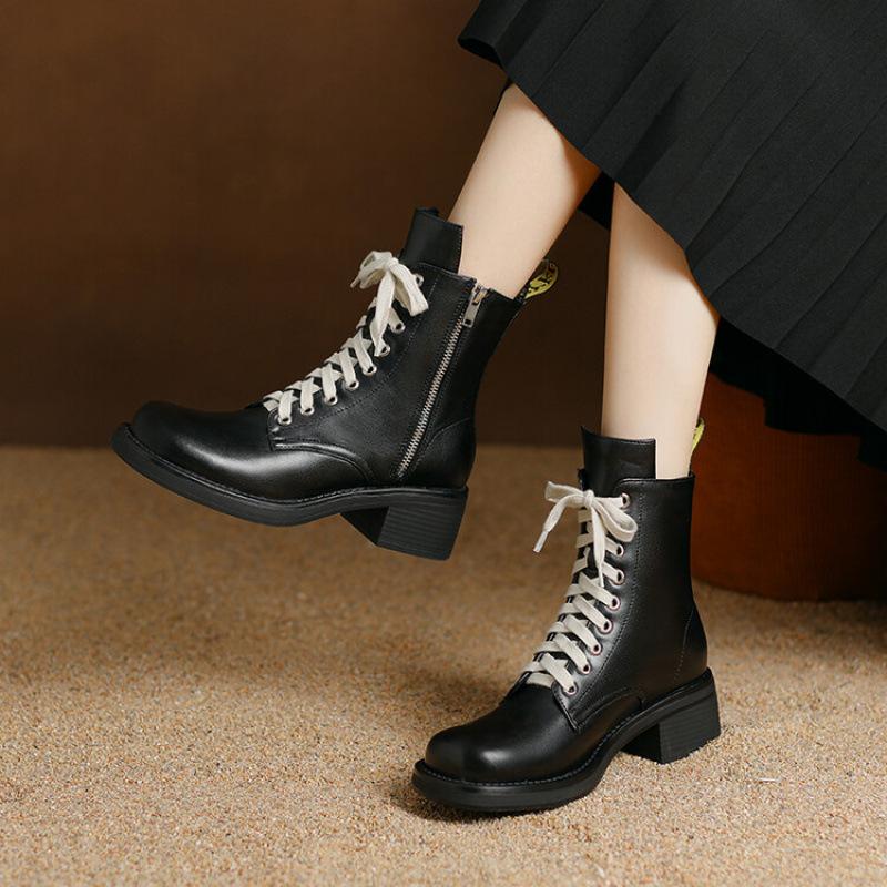 Autumn and Winter New Leather Martin Boots Women's Thick-soled Non-slip Large-size Women's Boots Side Zipper Korean Version Square and Medium Boots